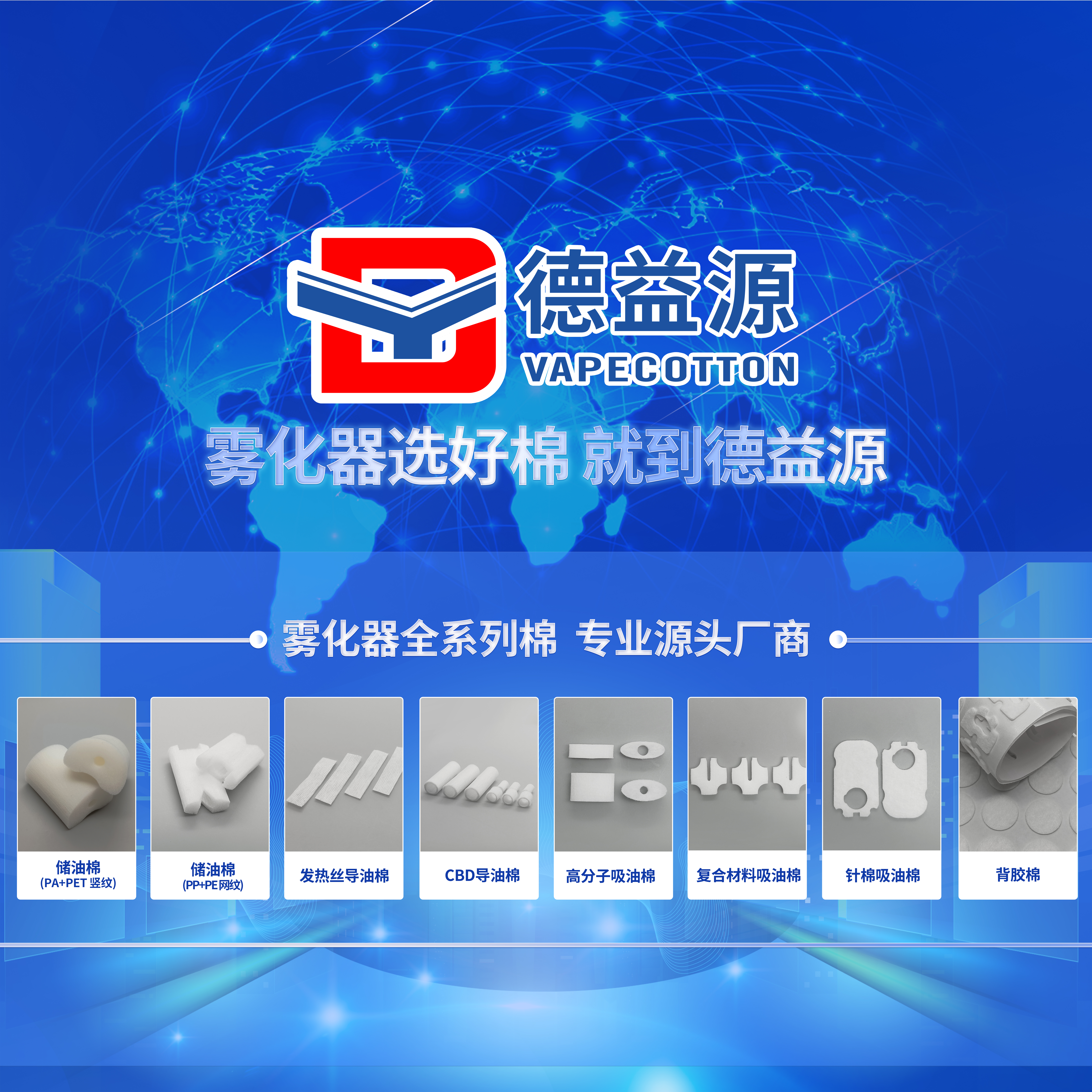 9月07-09日, 德益源將攜帶自研霧化器全系列 棉產品(儲油棉、發熱絲導油棉、吸油棉、背膠棉、濾嘴棉、CBD導...